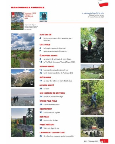 Vous y lirez notamment des articles de retour de rando, tant en Belgique qu’à l’étranger.